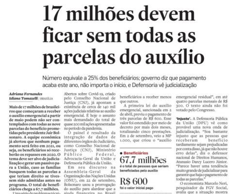Veja a matéria completa em: https://www.cps.fgv.br/cps/bd/clippings/xc1646.pdfMeio: O Estado de S. Paulo - SPMídia: Jornais e RevistasData: 27/10/2020Jornalista: Adriana Fernandez e Idiana T.