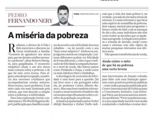 Veja a matéria completa em: https://www.cps.fgv.br/cps/bd/clippings/yc1083.pdfMeio: O Estado de S. Paulo - SPMídia: Jornais e RevistasData: 29/06/2021Jornalista: Pedro Fernando Nery