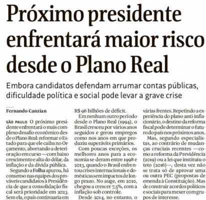 Veja a matéria completa em: https://www.cps.fgv.br/cps/bd/clippings/yc2878.pdfMeio: Folha de S. Paulo - SPMídia: Jornais e RevistasData: 29/11/2021Jornalista: Fernando Canzian