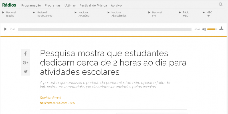 Veja a matéria completa em: https://www.cps.fgv.br/cps/bd/clippings/midias/xc1651.mp3Meio: Rádio NacionalMídia: RádioData: 26/10/2020Jornalista: Não Informado