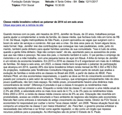Veja a matéria completa em: https://www.cps.fgv.br/cps/bd/clippings/tc268.pdfMeio: A Tarde online - BAMídia: InternetData: 12/11/2017Jornalista: Amanda Pupo