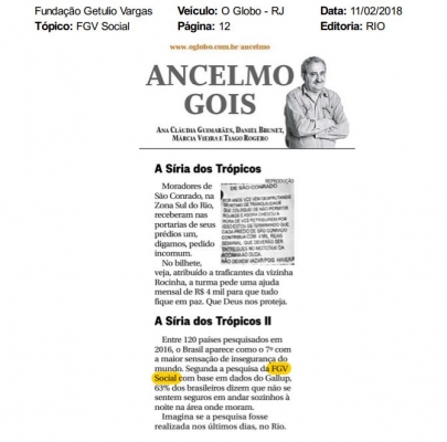 Veja a matéria completa em: https://www.cps.fgv.br/cps/bd/clippings/uc024.pdfMeio: O Globo - RJMídia: Jornais e RevistasData: 11/02/2018Jornalista: Ancelmo Gois
