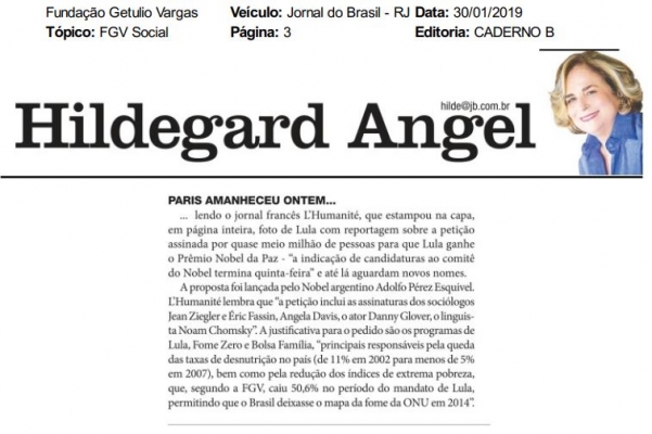 Veja a matéria completa em: https://www.cps.fgv.br/cps/bd/clippings/uc702.pdfMeio: Jornal do Brasil - RJMídia: Jornais e RevistasData: 30/01/2019Jornalista: Hildegard Angel