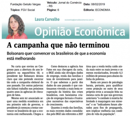 Veja a matéria completa em: https://www.cps.fgv.br/cps/bd/clippings/vc012.pdfMeio: Jornal do Comércio - RSMídia: Jornais e RevistasData: 08/02/2019Jornalista: Laura Carvalho