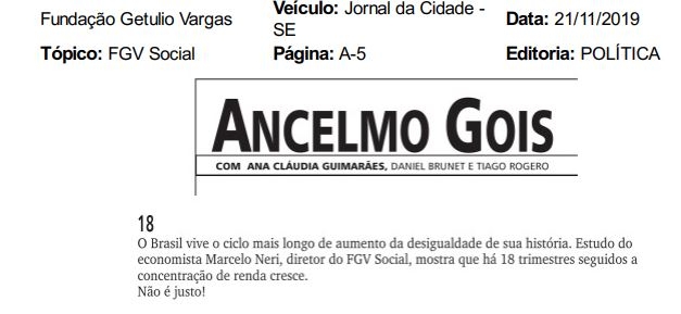 Veja a matéria completa em: https://www.cps.fgv.br/cps/bd/clippings/vc837.pdfMeio: Jornal da Cidade - SEMídia: Jornais e RevistasData: 21/11/2019Jornalista: Ancelmo Gois
