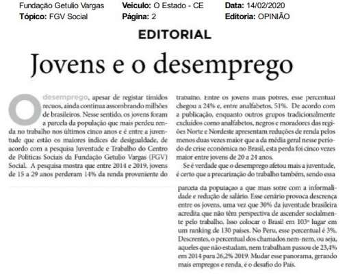 Veja a matéria completa em: https://www.cps.fgv.br/cps/bd/clippings/xc075.pdfMeio: O Estado - CEMídia: Jornais e RevistasData: 14/02/2020Jornalista: Não Assinado