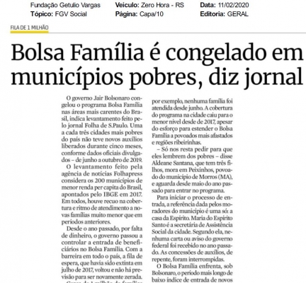 Veja a matéria completa em: https://www.cps.fgv.br/cps/bd/clippings/xc103.pdfMeio: Zero Hora - RSMídia: Jornais e RevistasData: 11/02/2020Jornalista: Não Assinado