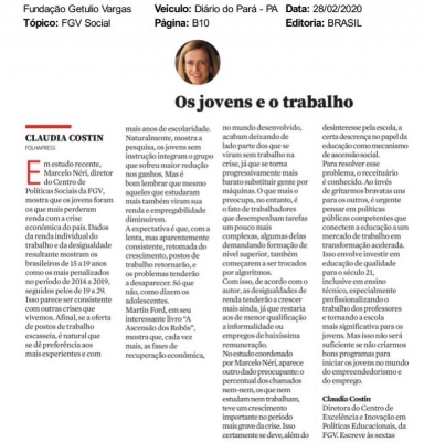 Veja a matéria completa em: https://www.cps.fgv.br/cps/bd/clippings/xc184.pdfMeio: Diário do Pará - PAMídia: Jornais e RevistasData: 28/02/2020Jornalista: Claudia Costin